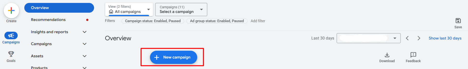 From here, click on the “New campaign” button.