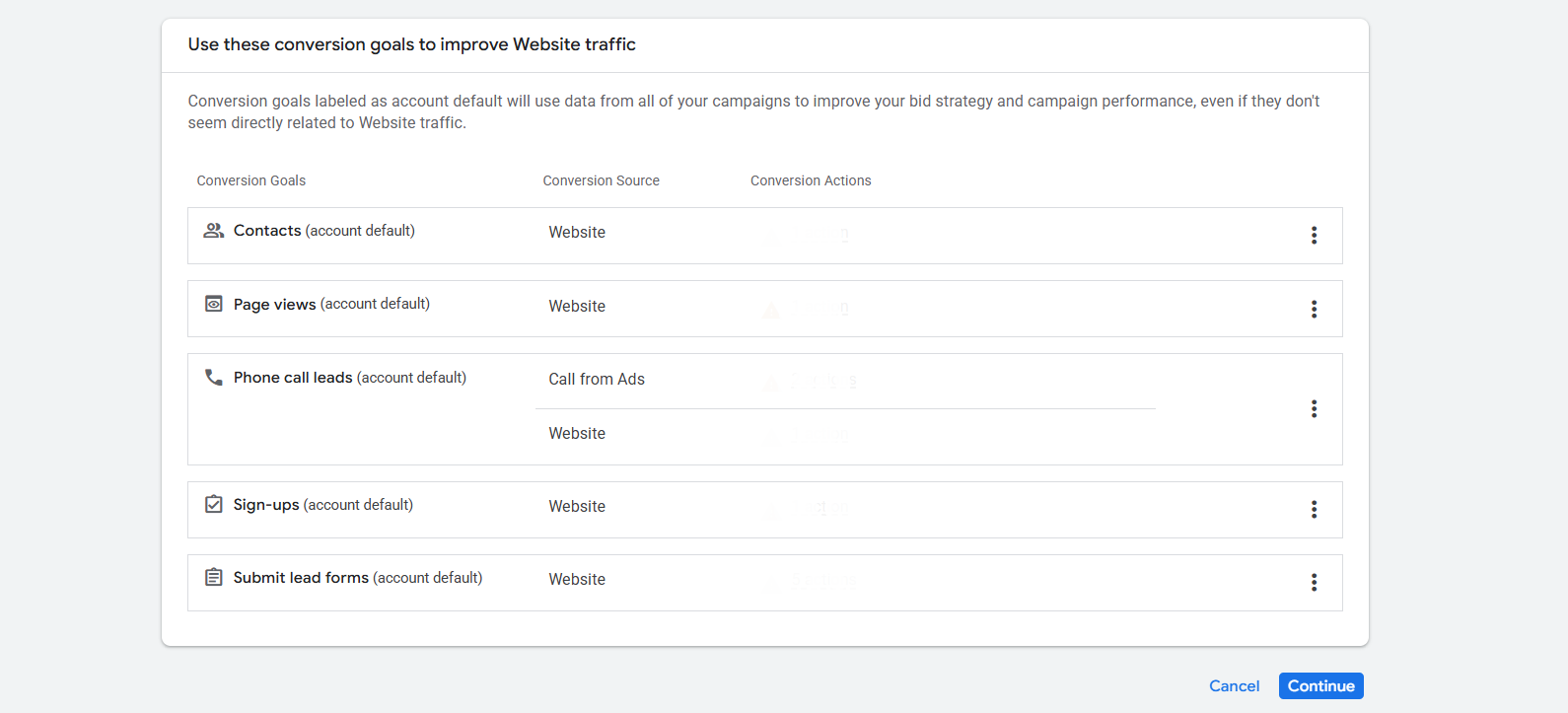 If you already complete your tracking perfectly, then you will have your conversion goals here in the list. Choose one from your traffic, remove the rest, and continue.