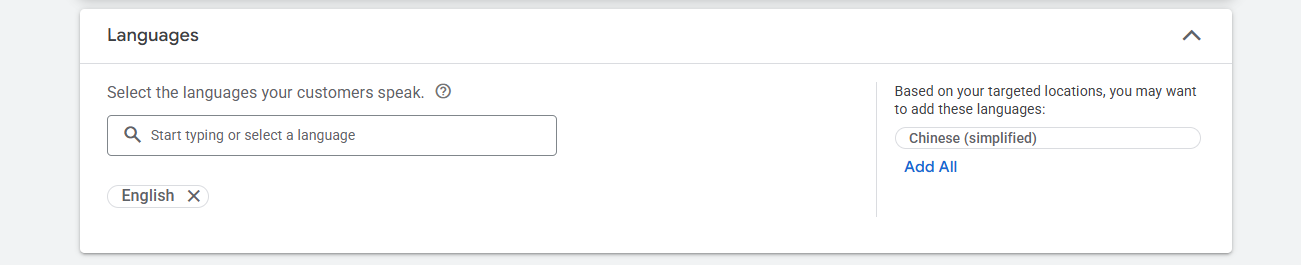 This is the place where you can select the targeted location for displaying your ads. For more details, read our earlier article on the location and language.