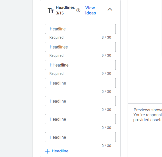 You will be able to write down 15 totally different headlines for your ad, and you will have to write down at least three. Try to create 15 different headlines because then your Google Ads platform will get many options to show your traffic in different ways.
