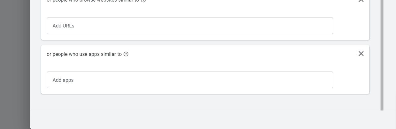 In this section, if you enter your selected keywords, Google will display your ads to users who have shown interest or intent to purchase related products or services. With the second option, Google will show your ads to those who have searched for any of these terms on Google.