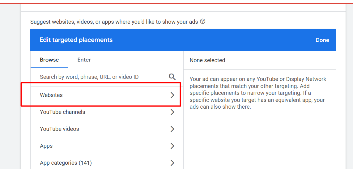 With the option, we can do something greater. For example, with the option now you can target websites. If you want to show your ads to any targeted website, then you can use this option.