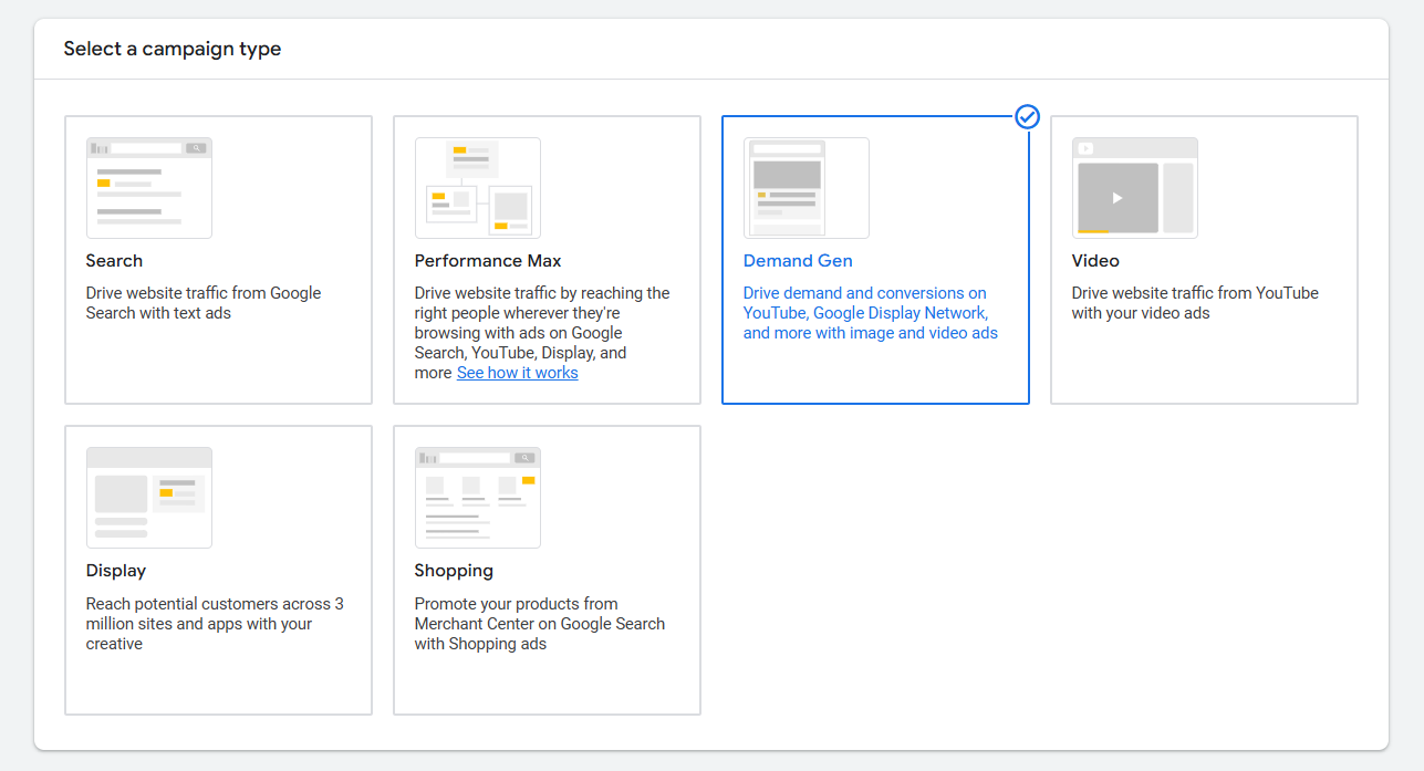 If you want to generate interest in your product or service before people are prepared to buy it, you should think about implementing the Demand Gen campaign type.