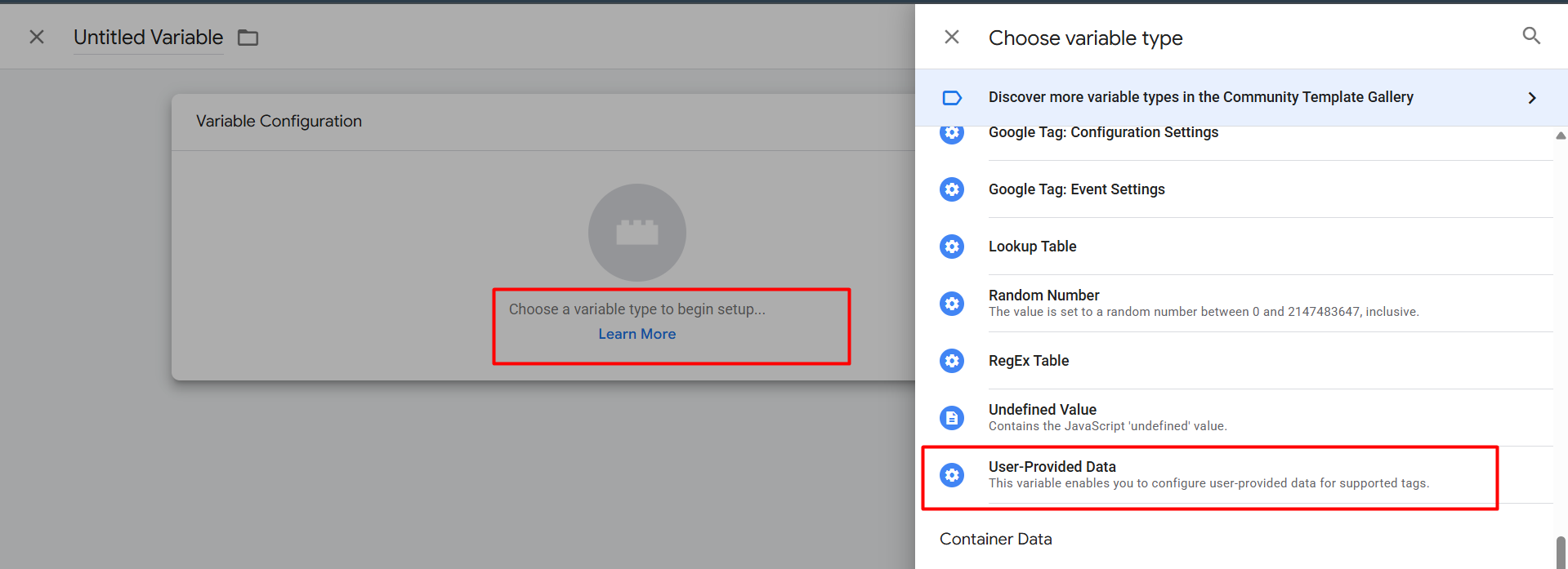 Start the User-Provided Data Event Setup With GTM