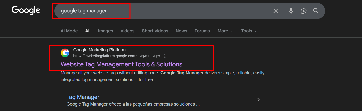 First, search for GTM in Google, then proceed to create the new GTM container.
