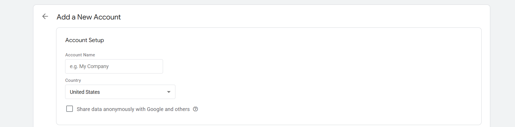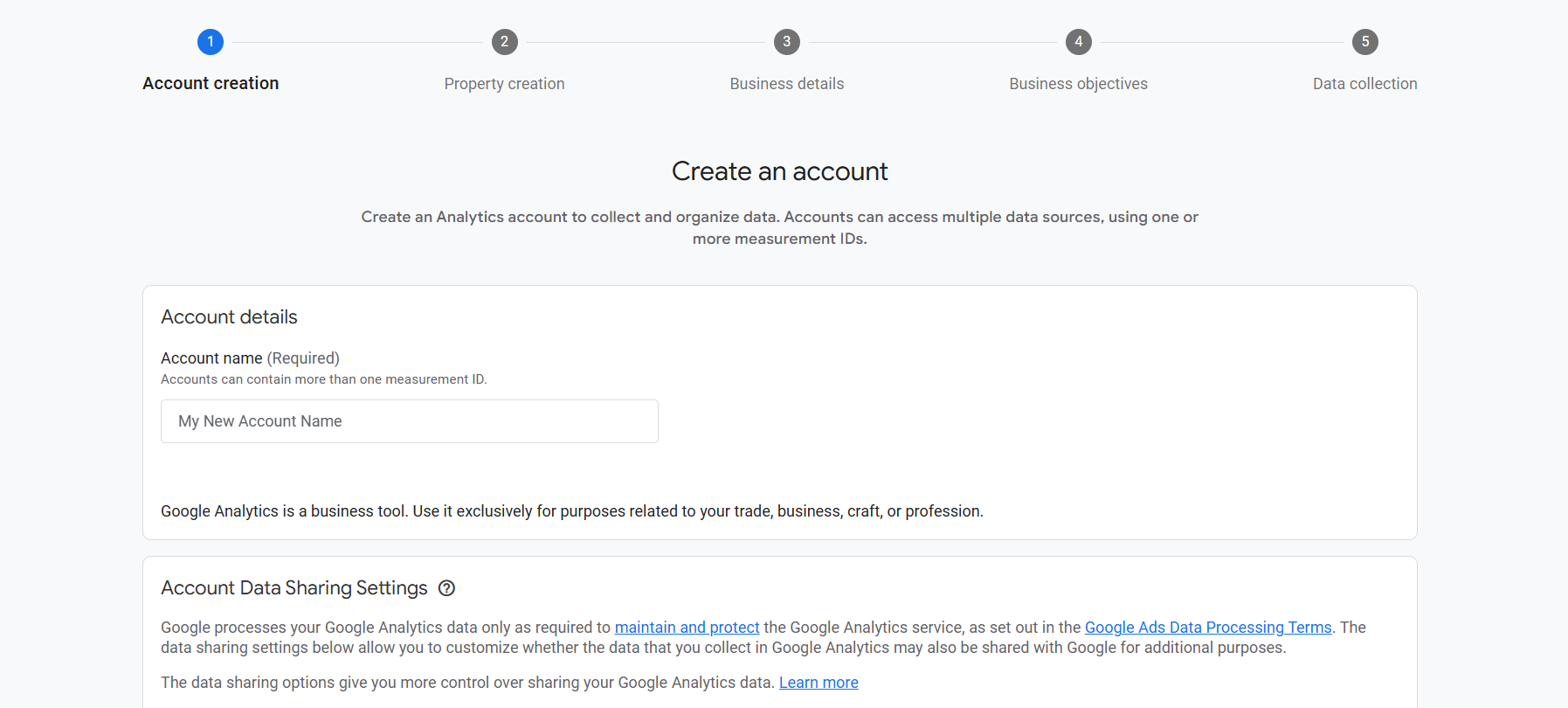 From here, we have to start the setup, and your first job is to write down the account’s name. This account structure is: first, you interact with the account, then complete the property. That means first account, then account property. It’s the same as the GTM first account; then under the account, we create the container.