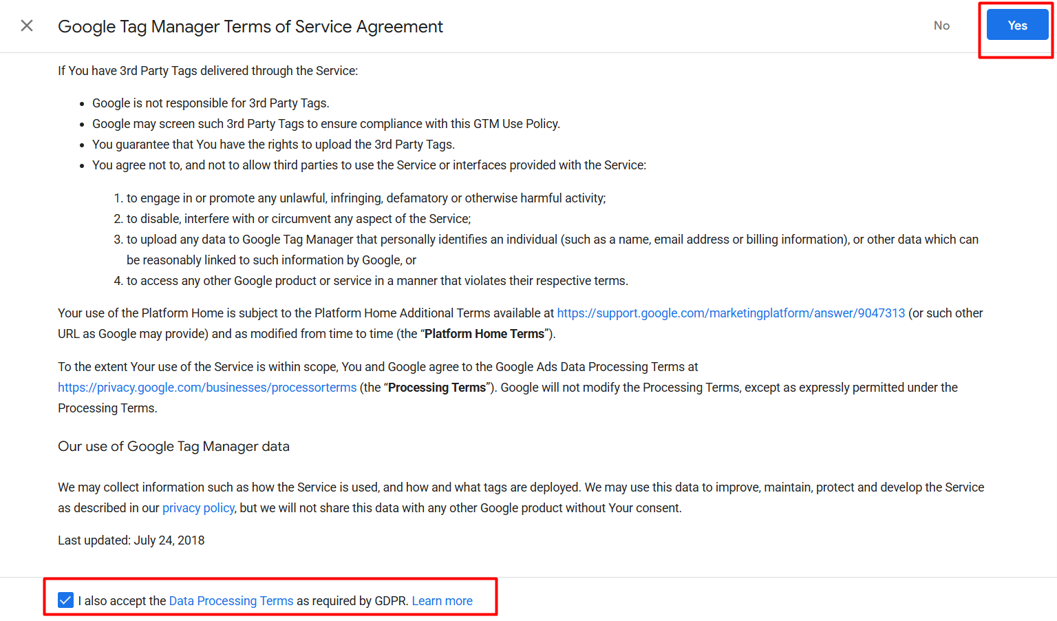 Now for the next option, you have to accept Google’s terms and conditions. If you have time, you can read the blog or leave it.