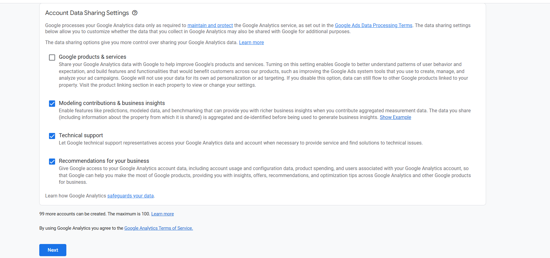 In the data sharing section of your account, enable all options or choose to skip this step and proceed to the next one.