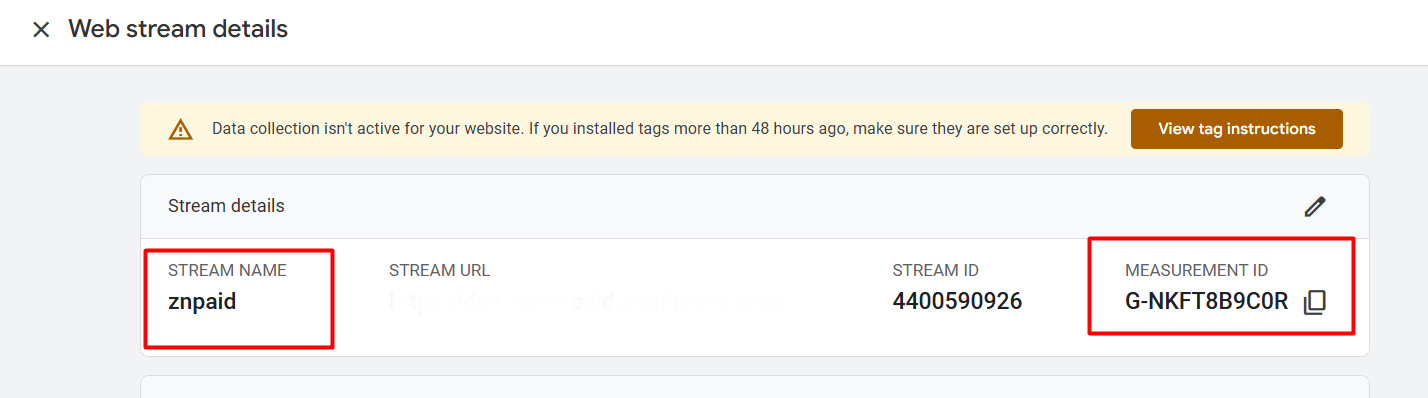 After creating the stream successfully, here is your data stream, ready. If you collect the “Measurement ID”, then with the measurement ID we will be able to set up the GA4 with our website through GTM. But if you click on the “view tag instructions” button: