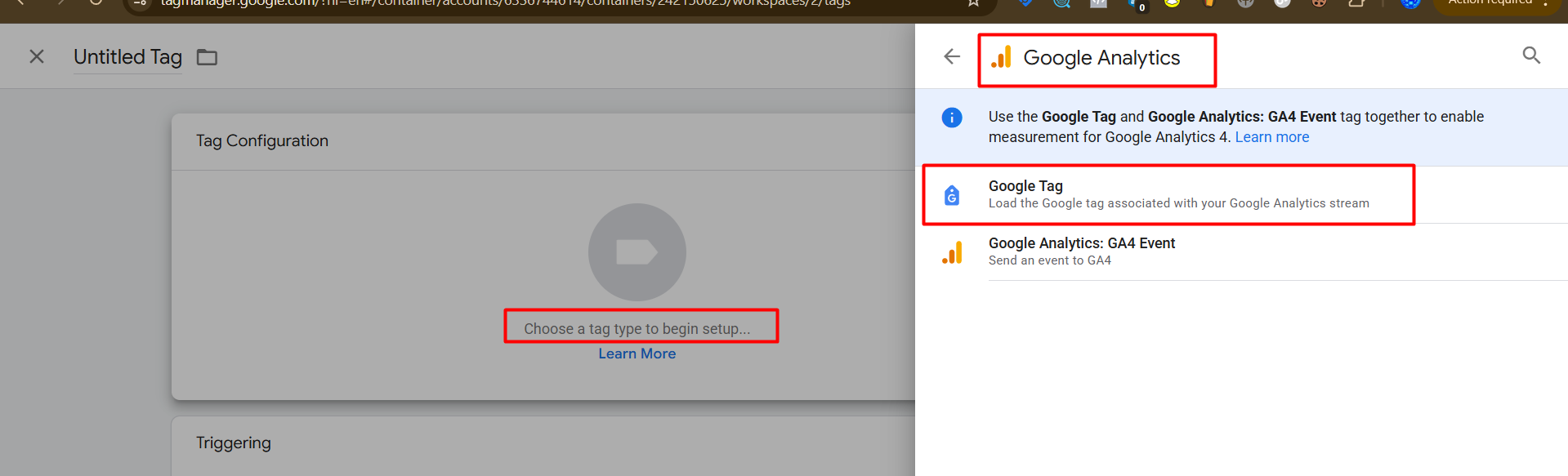 At first, collect the Measurement ID from GA4 and come back to the Google Tag Manager. Click on the tag section and go to set up a new tag.