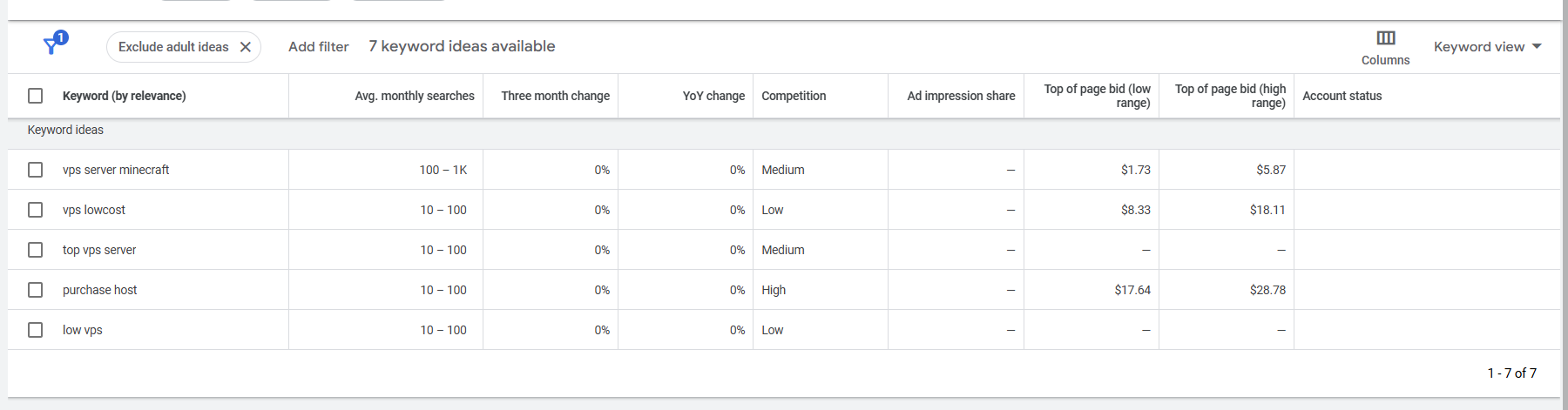 Top Page Bid (High Range): Is the amount you’d need to bid if you want a better chance of showing at the very top of the search results page.
