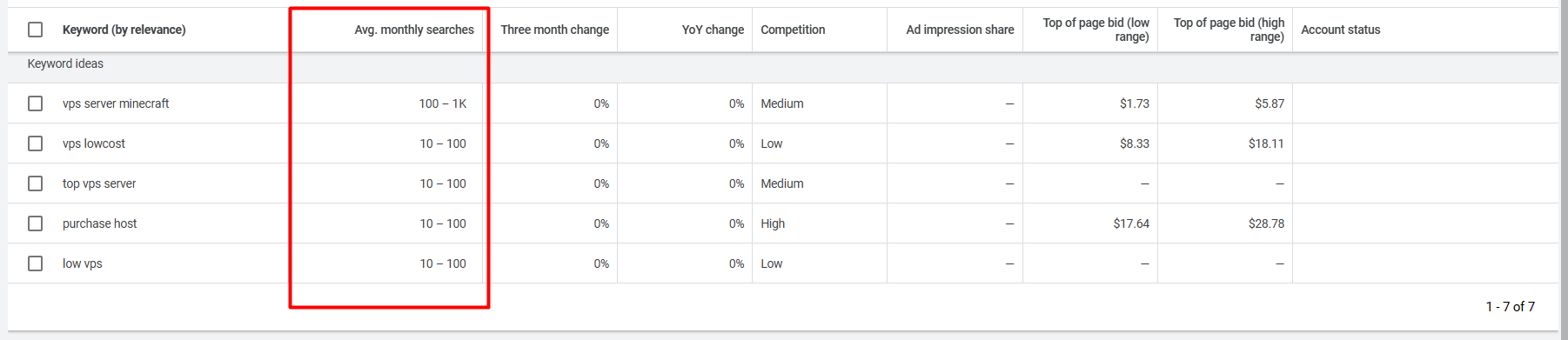 Avg monthly search: indicates the average number of times a keyword is searched for on Google each month. A high number for a keyword indicates that many people are searching for it. Few people look for it if it’s low.