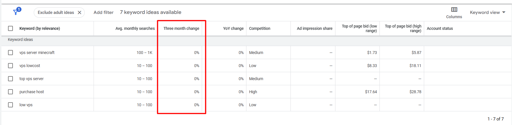 Three-Month Change: shows how much the search volume for a keyword has increased or decreased over the last three months.