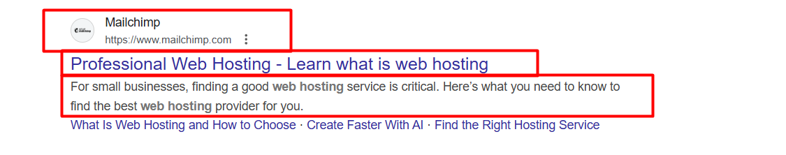 The headlines are arguably the most crucial component because they are the first and most prominent thing a user sees, often appearing as blue, clickable links.