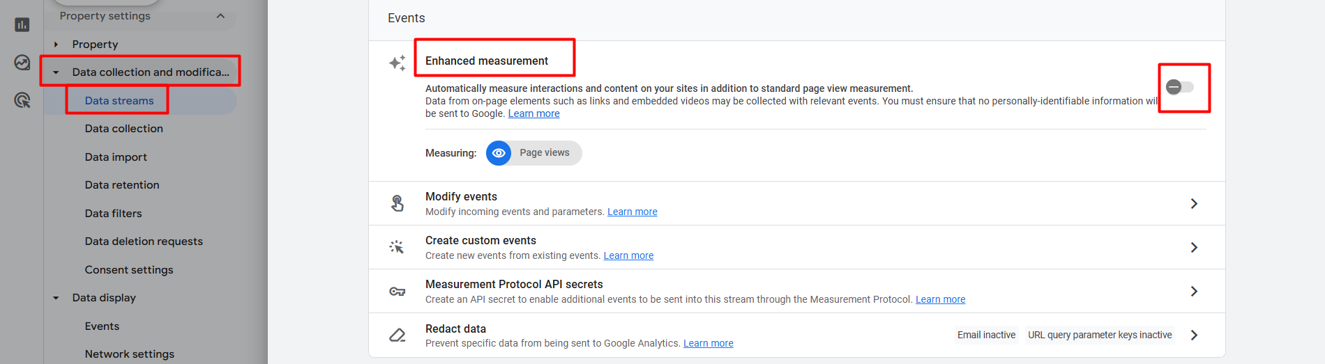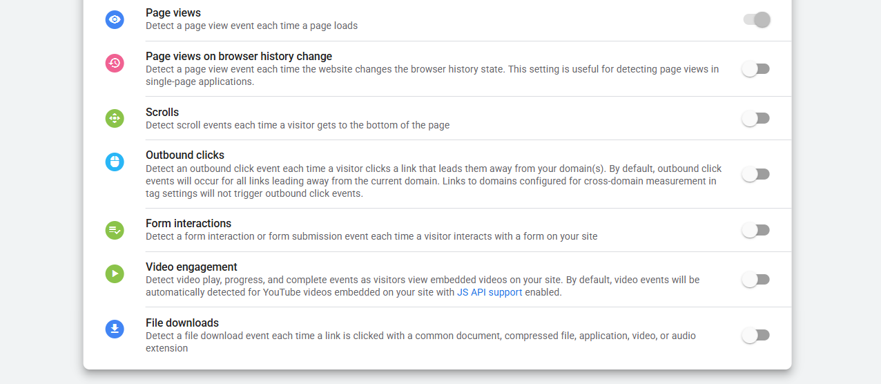 Automatic event detection is also related to the enhanced measurement. We don’t want to set up or take any automatically created events from GA4.