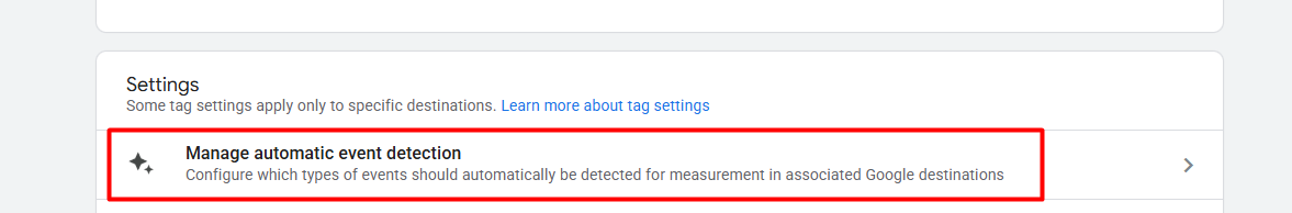 After clicking on “Configure tag settings”, you will get your targeted settings, “Manage automatic event detection”. Click on it to proceed to the next step.