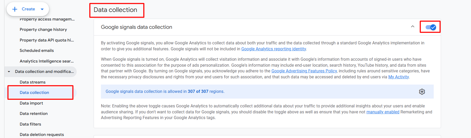After entering the setting, enable the first one, “Google signals data collection”.