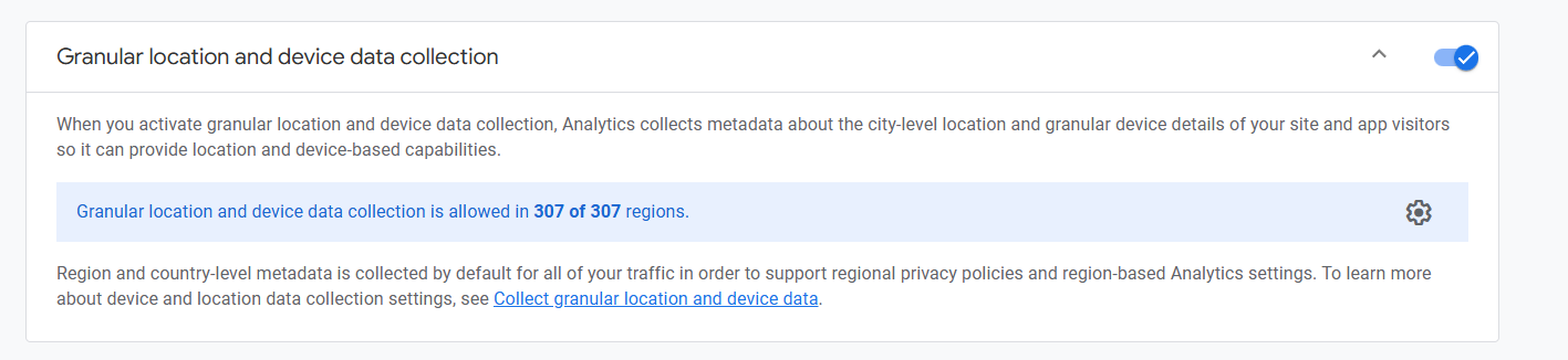 Next, scroll down and enable the additional setting: “Granular location and device data collection.”
