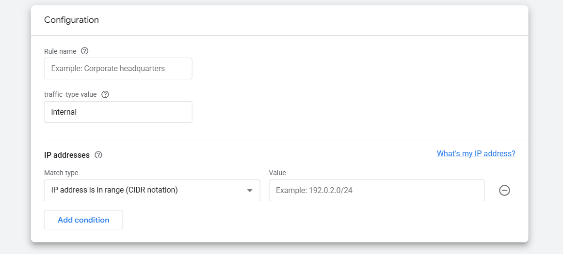 Here you will have to define your internal traffic. If you are unfamiliar with internal traffic, consider this example: you have a website, correct? There your internal team is working.