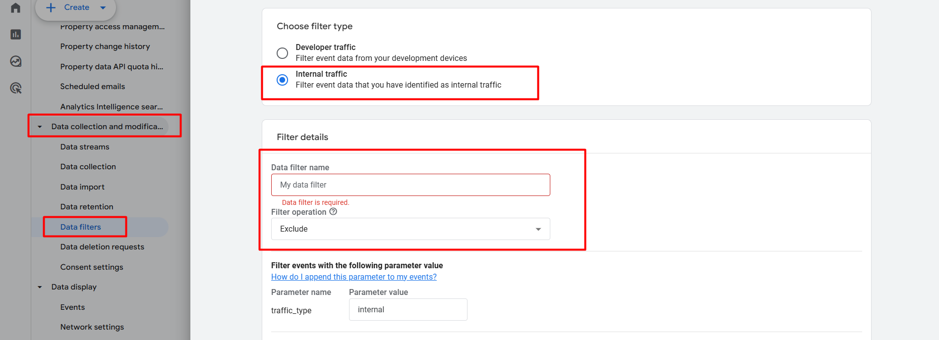If you want to filter out internal traffic, return to the “Data filters” section. From here, you can complete the data filtering work.