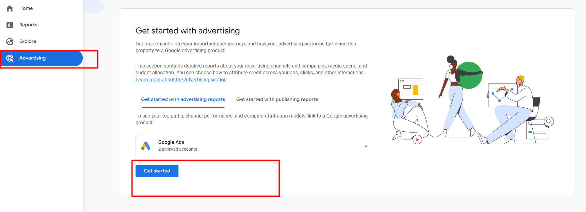 After linking the accounts, you can view all the data in your GA4 “Advertising” section.