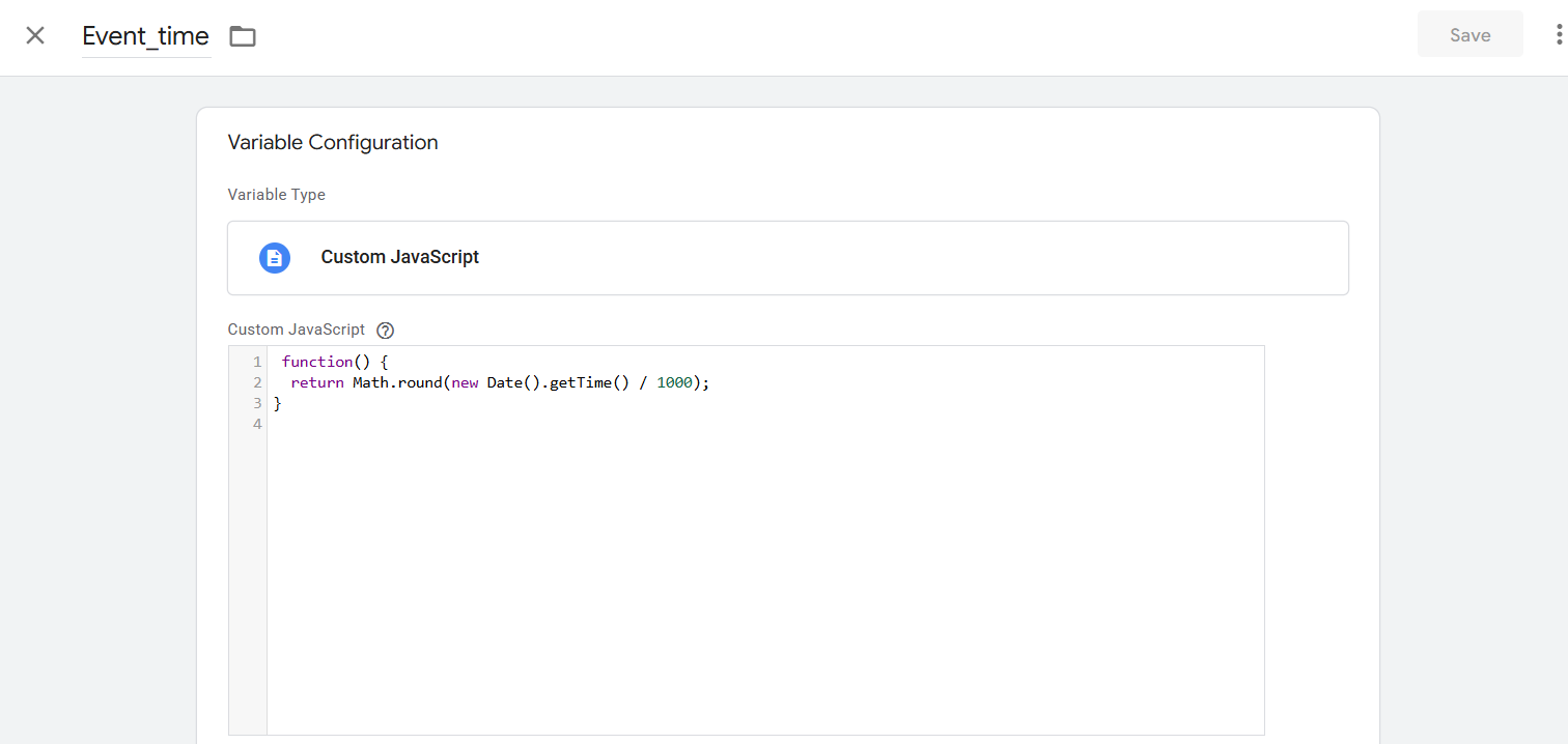 To create this variable, first go to your variable section and create a new variable from the user-defined variable. Select “Custom JavaScript” as your trigger type. Then paste the code and save the variable to use it here.