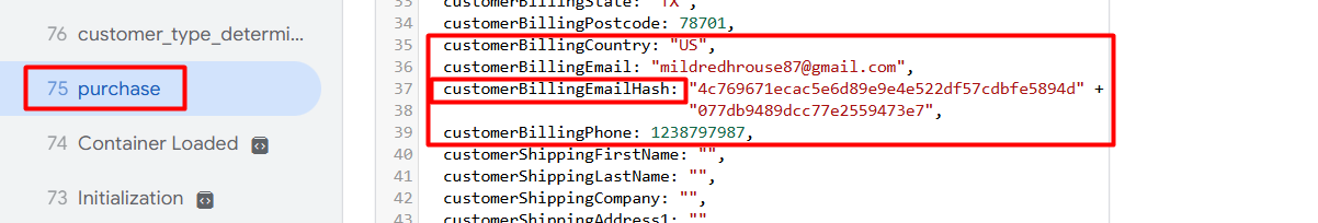 In this way, you will be able to see your customer email in the data layer, so we have to send the values to Pinterest. But we have to use the hash value to send it to Pinterest.