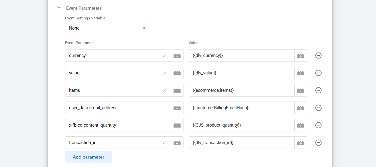 Here for all these parameters, you can use the same variable you used in your browser-side tracking. You just have to change the parameter name.