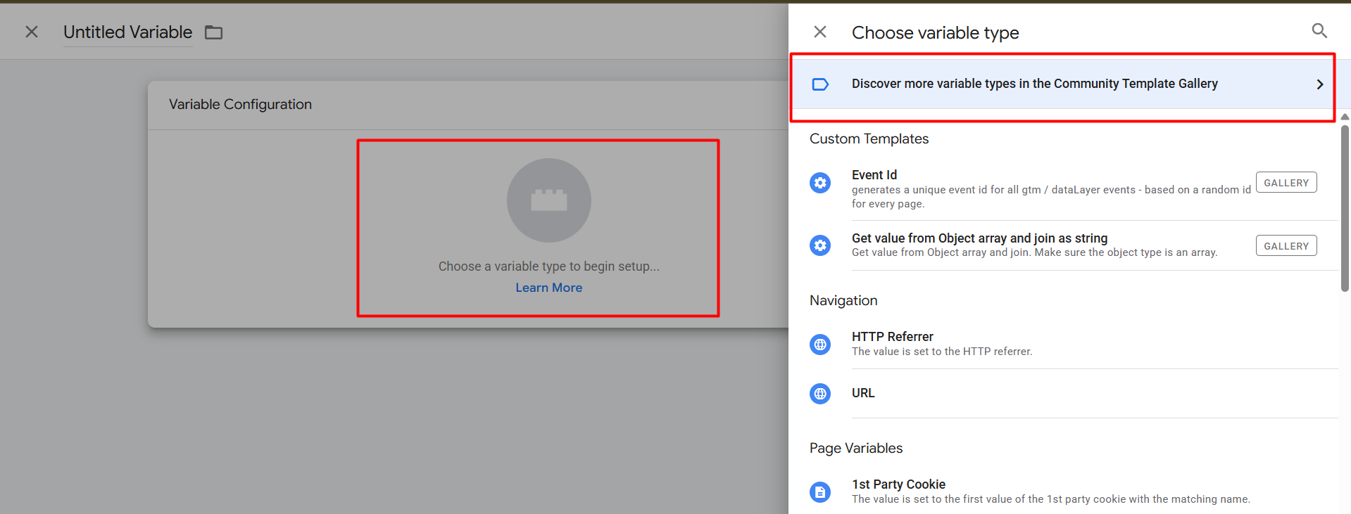 To set up the event ID with the event, first we have to add one more new template in our GTM. So to do it, go to your variable section and create a new variable from the user-defined variable.