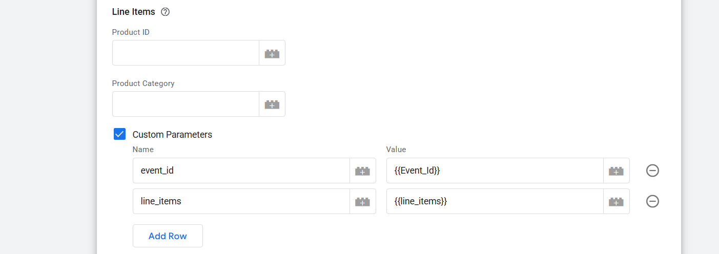 In every Pinterest template, you can add this under the “Line Items.” In the same way, set up the event ID for every single tag.