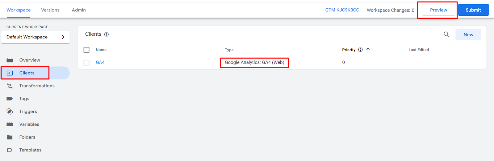 This is the view of your server container. Here you can see the GA4 (Web) client.