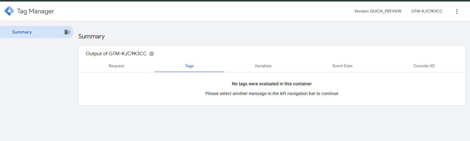This is your first view after opening the preview from the server container. Now go to your GTM web container and create a new preview and do some events on your site.
