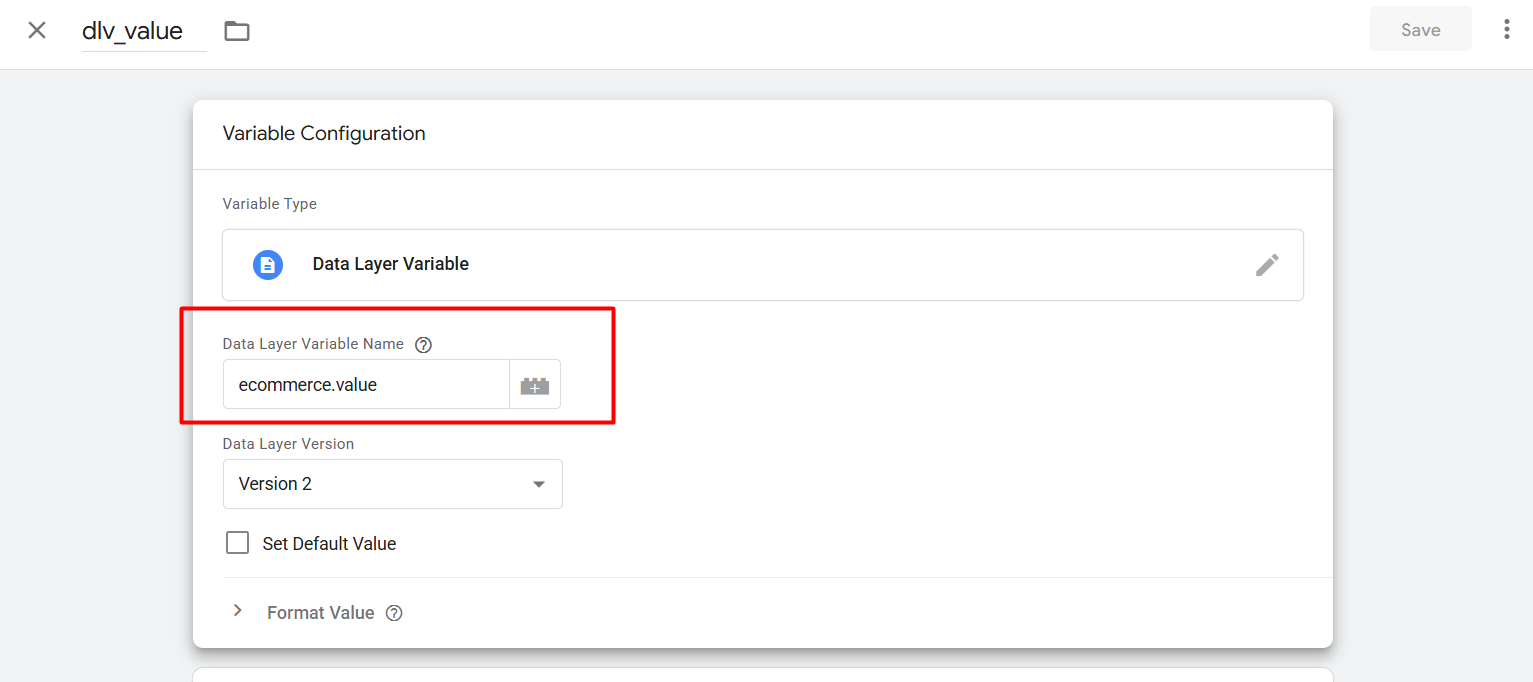 In the purchase value field, simply replace it with the variable name you created to capture the purchase data. This variable will ensure you always get the most recent ‘purchase_value.’