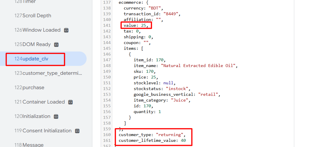 And now your tracking is complete! This custom code will push a completely new event into your data layer, allowing you to capture every detail related to the purchase, including the Customer Lifetime Value (CLV).