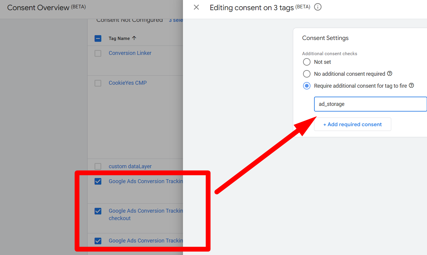 Here in this tag section you will be able to see this option. From here we have to set up our consent. So simply click on it to go to the next step.