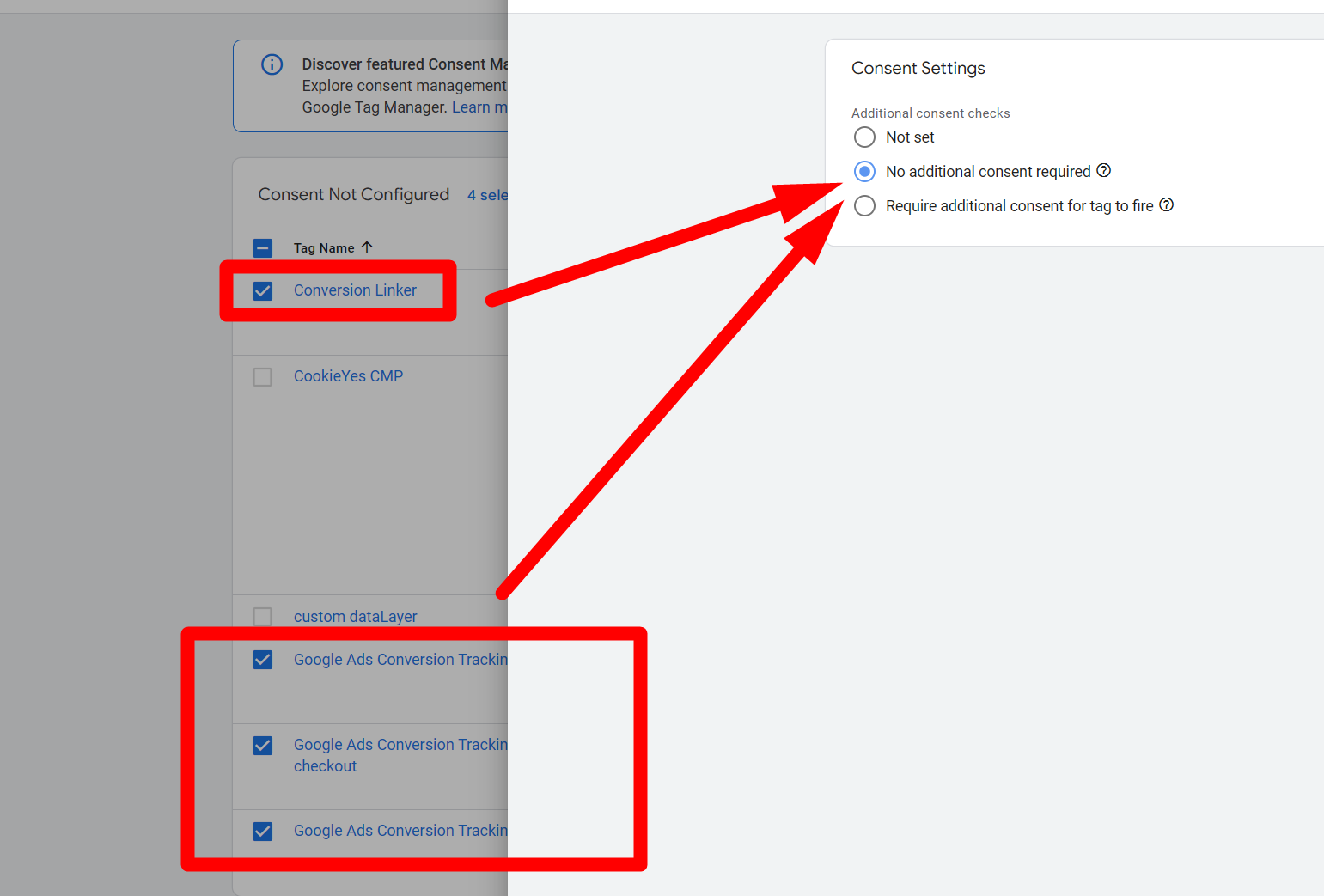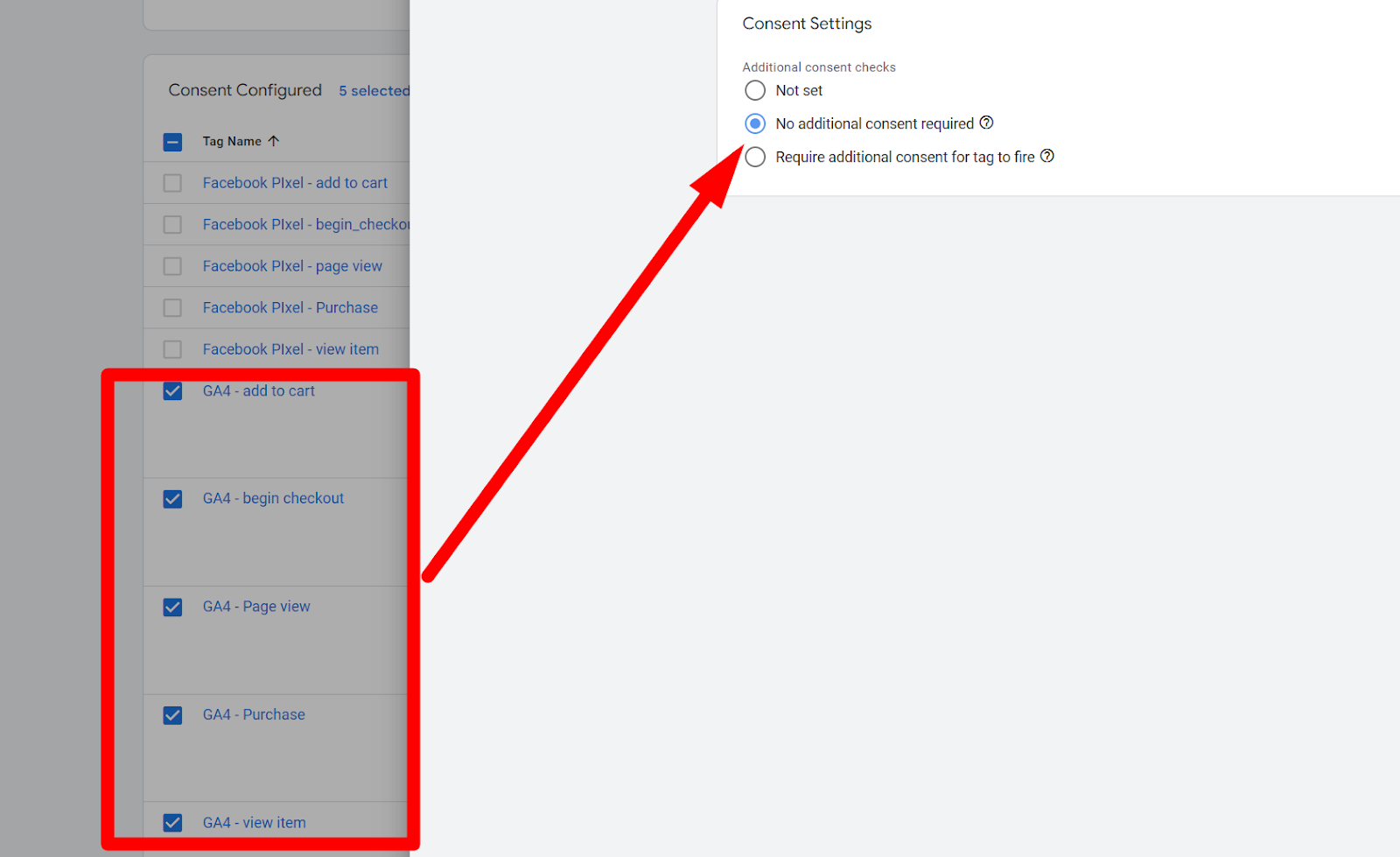 Nothing else again. go to your consent setup page and change the setup for “Google ads” and “GA4.”